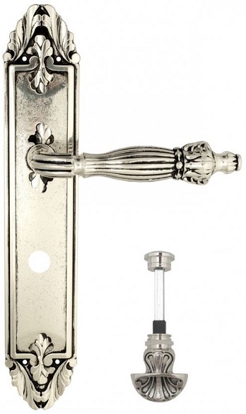 Дверная ручка Venezia \"OLIMPO\" WC-4 на планке PL90 натуральное серебро + черный