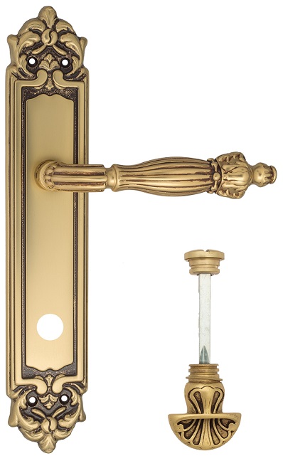 Дверная ручка Venezia \"OLIMPO\" WC-4 на планке PL96 французское золото + коричневый