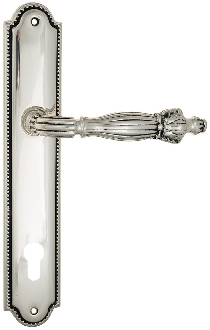 Дверная ручка Venezia \"OLIMPO\" CYL на планке PL98 натуральное серебро + черный
