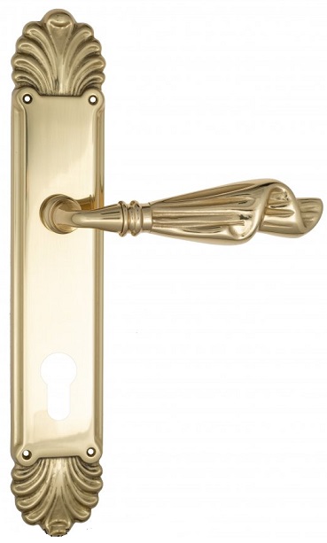 Дверная ручка Venezia \"OPERA\" CYL на планке PL87 полированная латунь
