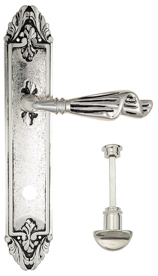 Дверная ручка Venezia \"OPERA\" WC-2 на планке PL90 натуральное серебро + черный