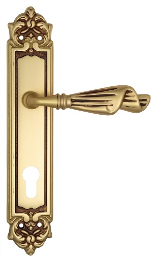 Дверная ручка Venezia \"OPERA\" CYL на планке PL96 французское золото + коричневый