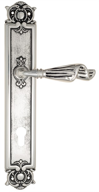 Дверная ручка Venezia \"OPERA\" CYL на планке PL97 натуральное серебро + черный