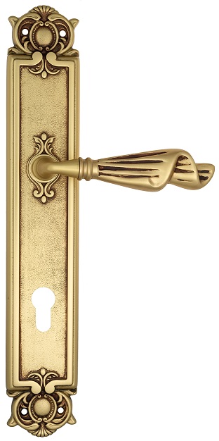 Дверная ручка Venezia \"OPERA\" CYL на планке PL97 французское золото + коричневый