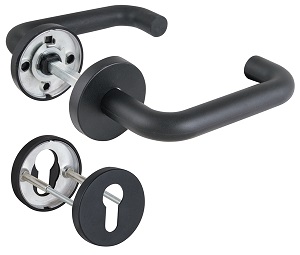 Комплект дверных ручек с накладками под цилиндр FR.DH57.0219 NE (DH-0219 NE) 8x140 мм, BL-24 черный