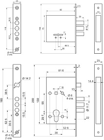 - Дополнительная защитаЗащита от высверливания, защита от вскртытия замка отмычкой