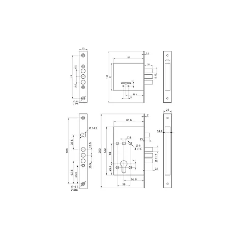 Комплект врезных замков BORDER Standart с ригелем 12 мм (ЗВ8-8У, ЗВ4-3/55), 3 кл. /76314+78931/