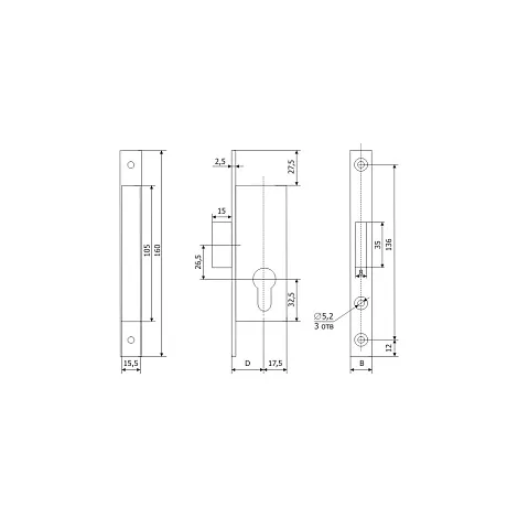 Корпус узкопрофильного замка Guardian PROFI 30.01.16 /123:228/