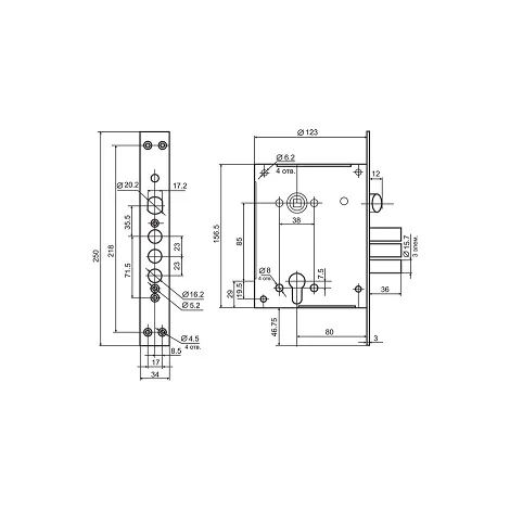 - Бэксет (удаление ключевого отверстия)80 мм