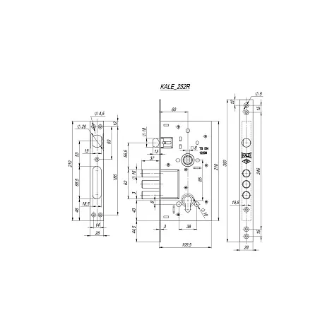 Корпус врезного Kale Kilit цилиндрового замка с защёлкой 252/R w/b для металлических дверей с верхней реверсивной защелкой, оснащен подшипником под ручку для плавного хода. Корпус замка будет иметь высший уровень защиты при комплектации цилиндром 4 уровня безопасности. Рекомендуется устанавливать на дверь в паре с сувальдным замком. Kale Kilit - компания зарекомендовавшая себя на российском рынке как производитель продукции, оптимальной по соотношению цены и качества. Гарантия: 1 год.