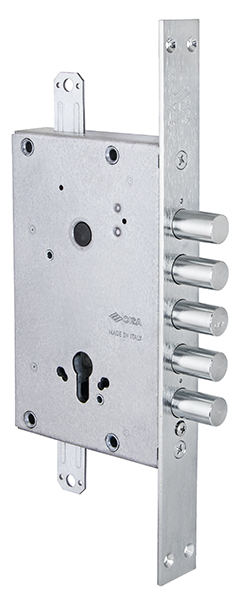CISA REVOLUTION 56.525.48 - Корпус замка врезного цилиндрового, без защелки, универсальный, c лицевой планкой. Имеет особую систему шестереночного редуктора REVOLUTION, которое делает выдвижение ригелей плавным и бесшумным. Замок обладает высоким качеством и при выборе хорошего цилиндра эффективно защитит дом или офис от недоброжелателей. Данные замки рекомендуется устанавливать на дверь в паре с сувальдными замками. Cisa (Италия) - один из флагманов мирового производства замков и синоним качества и надёжности. Гарантия: 1 год.