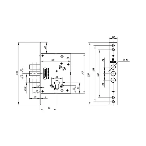 Корпус врезного Fuaro замка V25/C-60.00.3R16