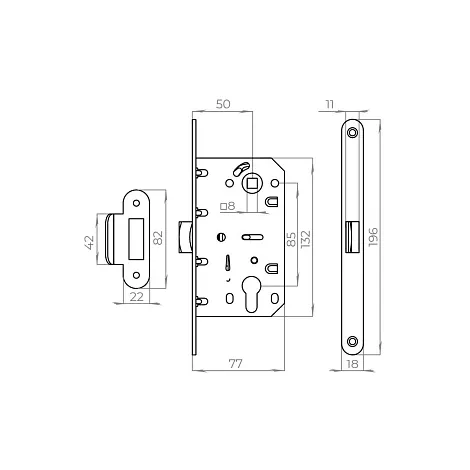 Корпус врезного замка c защёлкой Ajax PLASTLP85-50 ВL черный
