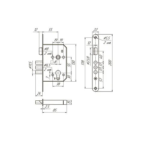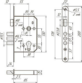 Корпус врезного замка Mettem (Меттэм) с защелкой ЗВ4 402.0.0