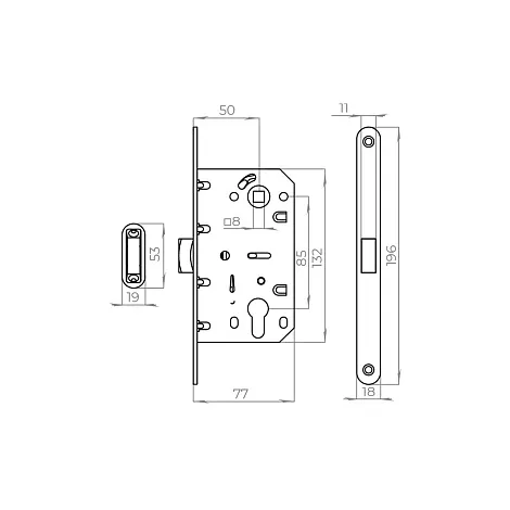 Корпус замка с магнитным механизмом AJAX LN85-50 предназначен для установки в деревянные межкомнатные двери. Подходит для дверей левого и правого открывания. Корпус выполнен из стали. Размер бэксета - 50 мм. Размер межосевого расстояния - 85 мм. Цвет: матовый никель. В комплектацию входят: ответная планка и крепежная фурнитура в цвет изделия. Гарантия: 1 год.