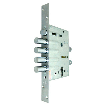Корпус замка Crit-M ЗВ-7РК-005-Хп предназначен для металлических дверей толщиной не менее 30 мм и сертифицированы по 4-му классу при использовании стандартного цилиндрового механизма секретности "KALE" с ключами "перфокарта" и броненакладкой. Корпус замка снабжен засовом, состоящим из 4-х ригелей диаметром 17,6 мм и универсальной защелкой. Вылет засова 36 мм при трех полных оборотах ключа. Гарантия: 1 год.