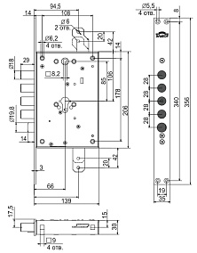 Корпус врезного замка с защёлкой Elbor Рубин 1.08.21 с тягами /56152/