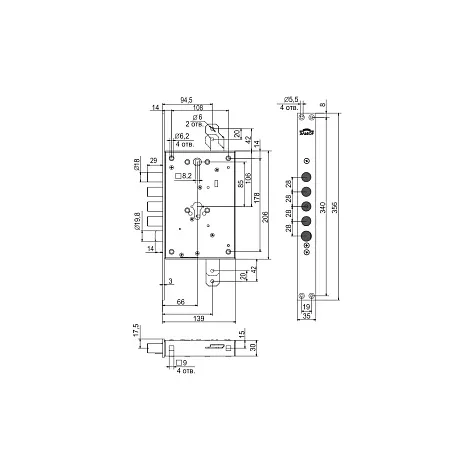 Корпус замка Рубин 1.08.21 с тягами для бронированных и металлических дверей усиленной конструкции. 4 класс безопасности. Имеет уникальную защиту от выбивания цилиндрового механизма. В случае выбивание цилиндрового механизма срабатывает защитный внутренний элемент, блокирующий засов замка в закрытом положении. Таким образом дверь остается закрытой и злоумышленник не может попасть внутрь. В корпусе замка есть отверстия под стяжные винты для крепления дверной ручки к корпусу замка. Также в корпусе замка предусмотрены отверстия для установки различных видов броненакладок. Гарантия: 1 год.