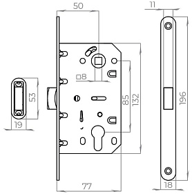 - Бэксет (удаление ключевого отверстия)50 мм