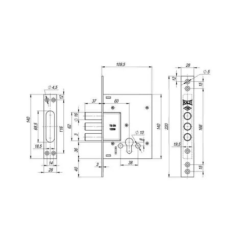 Корпус замка Kale kilit (Кале килит) врезного цилиндрового 257 w/b (тех. комплектация) хром