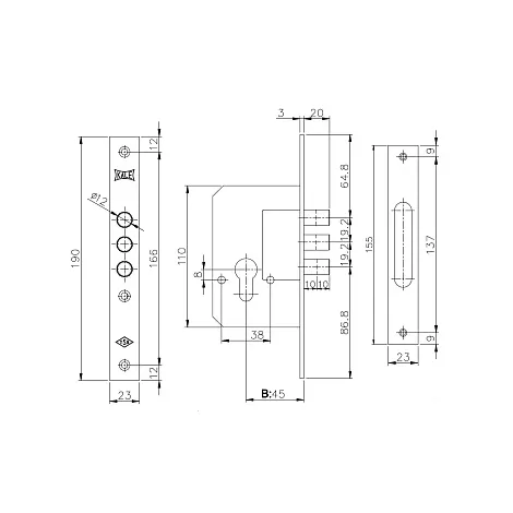 Врезной замок Kale Kilit 45 мм, 3 ригеля с английским (10 пинов) цилиндровым механизмом 68(26х10х32) мм. Расстояние от планки до центра цилиндра 45 мм. Гарантия: 1 год.