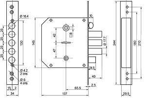- Дополнительная защитаЗащита от высверливания, защита от перепиливания засова, защита от вскртытия замка отмычкой