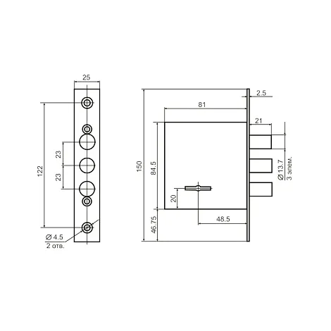- Бэксет (удаление ключевого отверстия)48.5 мм