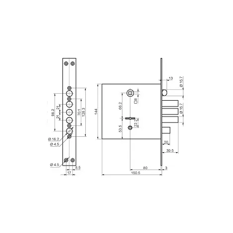 - Бэксет (удаление ключевого отверстия)80 мм