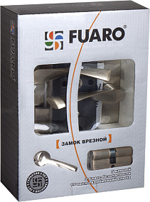Врезной замок Fuaro SET F9011 в комплекте с ручками предназначен для установки в деревянные входные и межкомнатные двери. Гальваническое покрытие прошло тест на устойчивость к коррозии в соляном тумане - более 72 часов. Ресурс работы более 250 000 циклов открывания/закрывания. Секретность 15 000 комбинаций, 2 класс безопасности. Корпус врезного замка с межосевым расстоянием 85 мм, бэксетом 45 мм, универсальной защелкой для левых и правых дверей. Дверные ручки на планке: материал ручек - алюминий, материал планок - сталь. В основании ручки опорный подшипник. Фурнитура: ответная планка, стяжные винты для ручек, крепежная фурнитура. Гарантия: 1 год.