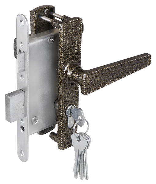 Замок врезной цилиндровый с защелкой в комплекте с ручкой Zenit ЗВ4-3.01 (бронза), 4 кл.
