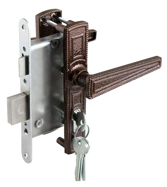 Замок врезной цилиндровый с защелкой в комплекте с ручкой Zenit ЗВ4-3.01 (медь), 4 кл.