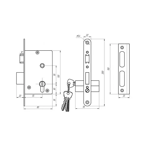 Замок врезной цилиндровый ЗВ4-3.01 предназначен для установки в деревянные и металлические двери толщиной 40-55 мм, правого и левого открывания. Верхняя реверсивная защелка приводится в действие ручкой или цилиндровым механизмом. Прямоугольный ригель с ходом 22 мм. Корпус замка выполнен из стали, ручки на планке из алюминия с декоративным финишным покрытием. Преимущества замка: простая, надежная конструкция; невысокая стоимость. В комплектацию входят: замок, ручки на планке, цилиндровый механизм 70 мм, 4 ключа, ответная планка и крепежная фурнитура. Гарантия: 1 год.