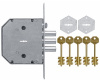 Замок врезной Class плоскосувальдный, с двумя внутренними тягами, 3-х ригельный засов, диаметр ригелей, защелки и задвижки - 18 мм, вылет засова 40 мм за 4 оборота, 5 ключей в комплекте. 4 класс. Гарантия: 1 год.