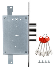 Gardian ЗВ 20.02 Т - Замок врезной сувальдный верхний с выводами под тяги. 3-й класс взломостойкости. Защита от наиболее распространенных методов вскрытия: защита от вскрытия отмычкой - ложные пазы на стойке и сувальдах, увеличенная жесткость пружин сувальд; защита от взлома – усиленная конструкция засова; защита от высверливания – закаленная стойка рейки хвостовика; защита от «свертыша» – ослабленный зуб рейки хвостовика. Предназначен для установки в металлические двери, шкафы и сейфы. Гарантия: 1 год.
