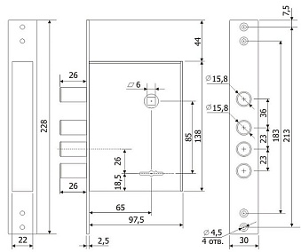 Замок врезной Gardian ЗВ 30.04 предназначен для установки в металлические двери. Универсальный, подходит для дверей правого и левого открывания. Встроенная задвижка в корпусе замка. Защита от наиболее распространенных методов вскрытия; защита от вскрытия отмычкой – ложные пазы на стойке и сувальдах, увеличенная жесткость пружин сувальд; защита от «свертыша» – ослабленный зуб рейки хвостовика; защита от взлома – при полностью выдвинутых ригелях замка, 30% их длины остается в корпусе замка, усилена конструкция засовов; защита от высверливания – закаленная стойка рейки хвостовика; защита от вандалов – отсутствует нижняя стенка корпуса замка. Фиксация засова задвижки в крайних положениях. В комплекте 4 длинных ключа. Гарантия: 1 год.