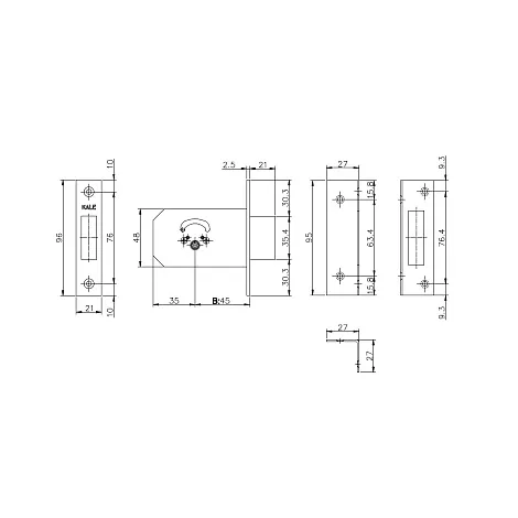 Врезной замок Kale Kilit 156/F 1 ригель с крестовым цилиндровым механизмом. Расстояние от планки до центра цилиндра 45мм. Гарантия: 1 год.