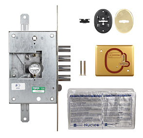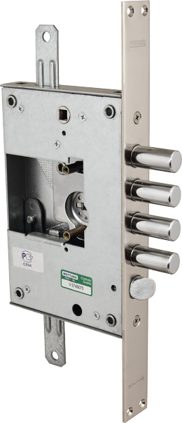 Замок врезной сувальдный 52.K771 D с тремя точками запирания с защелкой предназначен для левосторонних (правосторонних) дверей. Реверсивная защелка приводится действием ключом и фалевой ручкой. Бэксет 63 мм. 4 круглых ригеля диаметром 18 мм с ходом 36 мм. Межосевое расстояние ригелей 28 мм. Ход тяг 20 мм. В комплект замка входят: 1 нуклео с 5 сувальдными ключами 40 мм в герметичной упаковке, 2 накладки. Гарантия: 1 год