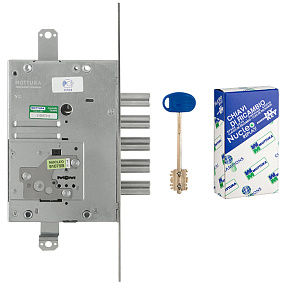 Замок врезной сувальдный 52.J525M My Key с тремя точками запирания без защелки предназначен для левосторонних (правосторонних) металлических дверей. Это более усовершенствованная модель: нуклео больше не выступает над поверхностью и не требует под себя «окно» в двери. Замок оснащен взаимозаменяемой нуклео, кодирование нуклео осуществляется при помощи специального ключа. Наличие на ключе системы My Key подвижных вращающихся элементов предотвращает незаконное изготовление дубликатов ключей. Копии таких ключей можно изготовить только в авторизованных центрах Mottura Club при предъявлении оригинального ключа и карточки владельца. Бэксет 64 мм. Круглые ригели диаметром 18 мм с ходом 36 мм. Ход тяг 20 мм. В комплект замка входят: 1 нуклео с 5 сувальдными ключами 60 мм в герметичной упаковке, 1 внутренняя накладка, 1 наружная накладка. Гарантия: 1 год