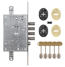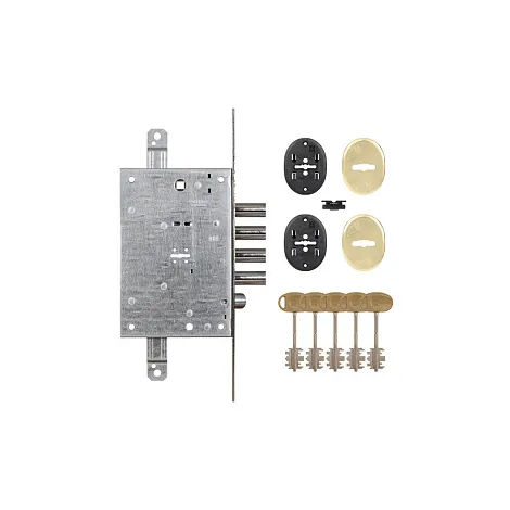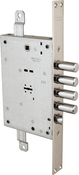 Замок врезной Mottura (Моттура) сувальдный с защёлкой 52.771 (универсальный), с тремя точками запирания и защёлкой диаметром 20мм, приводимой в действие ключом и фалевой ручкой сечением квадрата 8мм. Удаление ключевого отверстия и ручки 60мм. Круглые ригеля диаметром 18мм. Ход тяг 19мм. Гарантия: 1 год