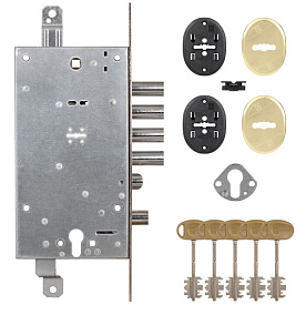 Замок врезной двухсистемный Mottura 54.787 предназначен для металлических и бронированных дверей. Основной сувальдный замок + вспомогательный цилиндровый замок. Реверсивной защелке, подходит для левых и правых дверей. Верхний сувальдный 4 оборотный замок с тремя точками запирания с защелкой диаметром 20 мм, приводимой в действие ключом, фалевой ручкой и цилиндровым механизмом. Круглые ригели диаметром 18 мм с ходом 40 мм для сувальдного замка. Нижний замок 2 оборотный под европейский цилиндр с круглыми ригелями диаметром 18 мм с ходом 22 мм. Бэксет: 63 мм. Ход тяг 20 мм. Гарантия: 1 год.