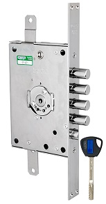 Уникальный запатентованный замок серии 3D KEY для стальных дверей обеспечивает максимальную безопасность. Съемное нуклео заменяется в случае потери ключа для обеспечения полной безопасности. Шестигранный ключ имеет три кодовые поверхности и две десмодромные дорожки, кодировочные пины выполнены из закаленной стали. 10 миллиардов возможных кодовых комбинаций. Изготовление дубликатов возможно только на фабрике Mottura. Модель замка 3D.771 подходит для дверей левого/правого открывания. Совместим по размерам и точкам крепления с основными замками для стальных дверей. С планкой в комплекте. Гарантия: 1 год