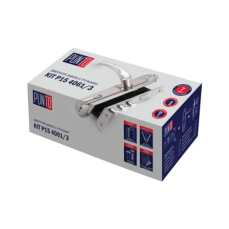 Замок врезной Punto цилиндровый с защёлкой в комплекте с ручкой LOCKSET15.CRONA.4061-3 (KIT P15 4061/3 CRONA) SN мат.никель