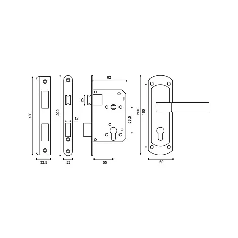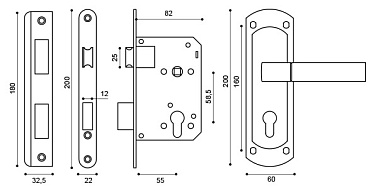 Корпус врезного замка с защелкой и фалевыми ручками на планке KIT P25 5558 ORION предназначен для установки на двери общественных и жилых помещений. Может монтироваться на левых и правых дверях, открывающихся наружу и во внутрь. Межосевое расстояние 58,5 мм. Бэксет 50 мм. В фалевые ручки на планке добавлены пружины и фиксаторы, что исключает "провисание" и обеспечивает четкую фиксацию их положения. Ручки изготовлены из алюминиевого сплава, а накладки из стали. Цилиндр в комплект не входит. Комплектация : корпус замка, ручки на планке, квадрат под ручки, крепеж, паспорт изделия, гарантийная карта. Гарантия: 1 год.