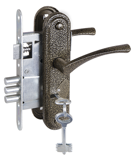 Замок врезной сувальдный с защелкой в комплекте с ручкой Zenit ЗВ9-4-2 (бронза), 3 кл.