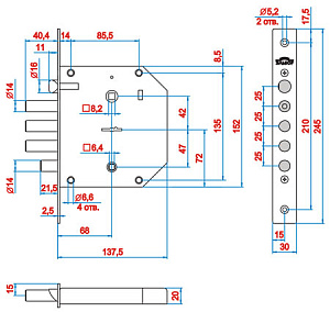 Замок врезной Elbor (Эльбор) сувальдный с задвижкой и защёлкой Базальт 1.05.41, 5 кл. /02646/. Гарантия: 1 год.