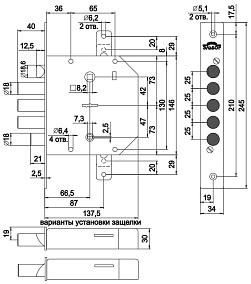 - Бэксет (удаление ключевого отверстия)55 мм -правый, 66.5 мм - левый