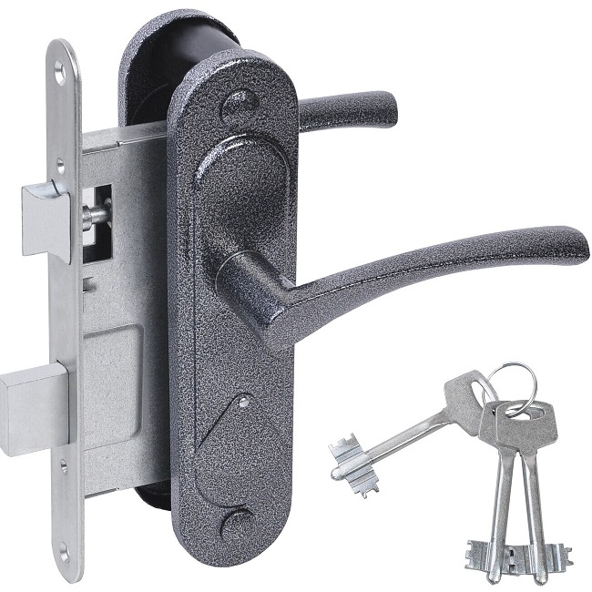 Замок врезной с ручками. Предназначен для установки в деревянные двери толщиной до 45мм, правого и левого открывания. Ригель прямоугольного сечения, вылет 22мм. Универсальная защелка. Стальной корпус, покрыт гальваническим покрытием. Межосевое расстояние 67 мм. Удаление ключевого отверстия 55мм. Материал ручек алюминиевый сплав. Ручки оснащены пружинами возврата. Комплектация: замок, 3 ключа, ручки, ответная планка, винтовые стяжки. Гарантия: 1 год.