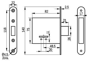 - Бэксет (удаление ключевого отверстия)48.5 мм