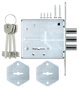 Замок врезной 4-х сувальдный CAM ЗВ8-4С/13 рекомендован для установки в двери толщиной 40-50 мм на период ремонта или строительства для дверей в помещениях с невысокими требованиями к охранным свойствам. Замок универсальный, возможна установка как в правые, так и в левые двери. В комплекте: шестигранные накладки (цинковое покрытие), 3 стальных ключа длиной 70 мм. Ответная планка в комплект не входит. Замок открывается и закрывается изнутри и снаружи ключом. Засов из трех штырей круглого сечения. Покрытие корпуса — цинковое. Покрытие лицевой и ответной планок — цинковое. Замок имеет защиту от высверливания, защиту от отмычек. Изготовлен из высокопрочных материалов. Имеет защитное покрытие. Количество секретных комбинаций - 500. Вылет ригелей — 21 мм, диаметр ригеля — 11 мм. Бэксет: 48,5 мм. Гарантия: 1 год.