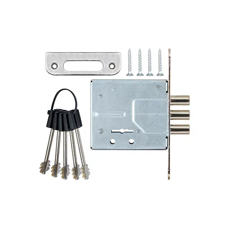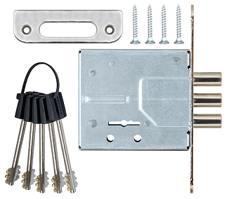Замок врезной 8-сувальдный CAM ЗВ8-8У/15 предназначен для установки в деревянные и металлические двери толщиной 40-50 мм, а также в металлические шкафы. Замок универсальный, возможна установка как в правые, так и в левые двери. В комплекте: круглые накладки «медный антик», 5 стальных ключей длиной 70 мм, ответная планка. Замок открывается и закрывается изнутри и снаружи ключом. Выпускается с засовом из трех ригелей круглого сечения. Покрытие корпуса — цинковое. Покрытие лицевой планки — никелевое. Замок имеет защиту от высверливания, защиту от отмычек. Изготовлен из высокопрочных материалов. Имеет защитное покрытие. Количество секретных комбинаций - 250 000. Вылет ригелей — 21 мм, диаметр ригелей — 11 мм. Бэксет - 48,5 мм. Гарантия: 1 год.
